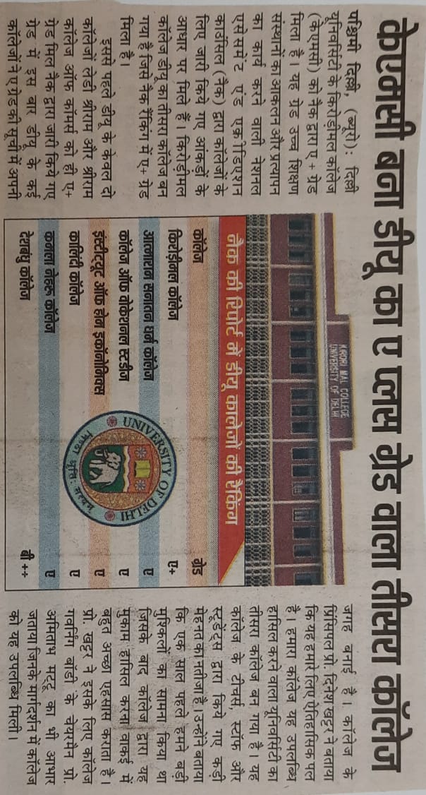 The interview scheduled on 09.01.2026 (Friday) for the appointment of Guest Faculty in the Department of Hindi, Kirori Mal College is postponed due to some technical reasons.